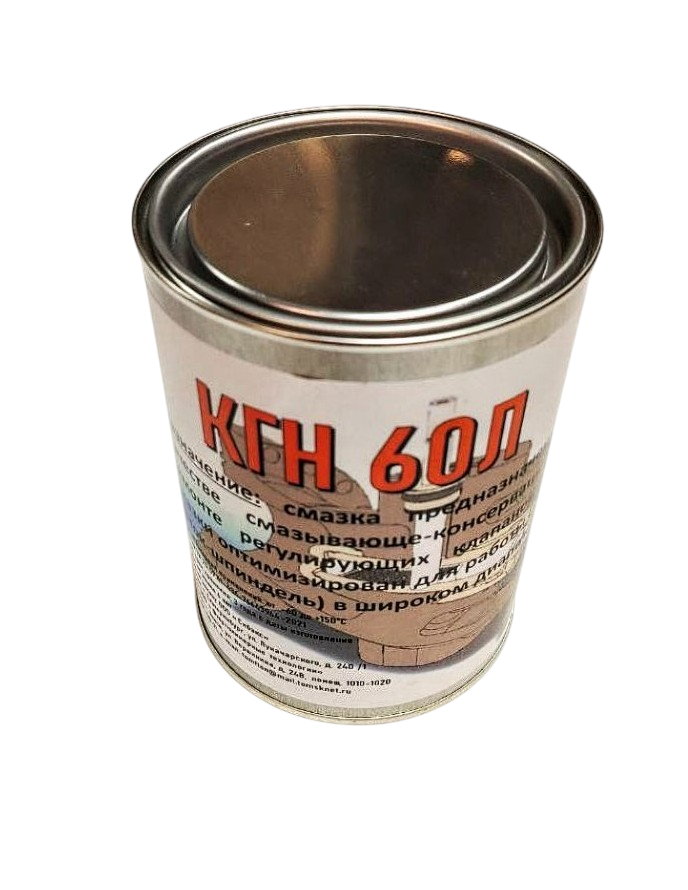 Смазка пластичная КГН 60Л изготовлена на базе смеси синтетического и кремнийорганического масел, загущенной комплексным алюминиевым мылом, с добавлением ультрадисперсного порошка политетрафторэтилен (TOMFLON) и пакета присадок. Смазка характеризуется хорошей стойкостью к воде и химически агрессивным средам, хорошей адгезией и защитой от коррозии.